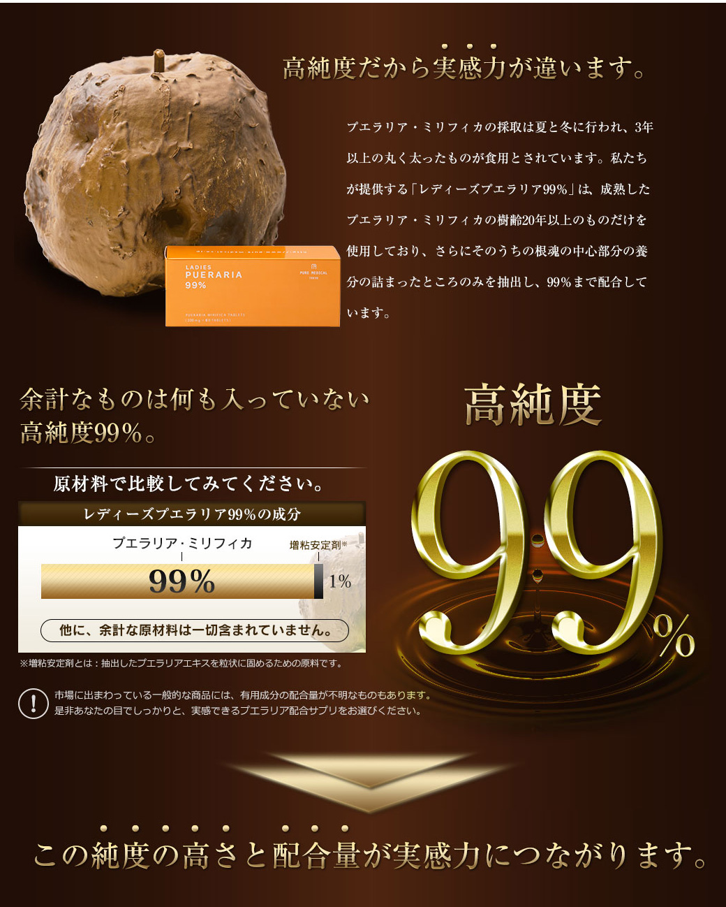 な自分を目指す本気のあなたに。高品質・高純度のプエラリア成分を99%まで配合した、愛され続けて